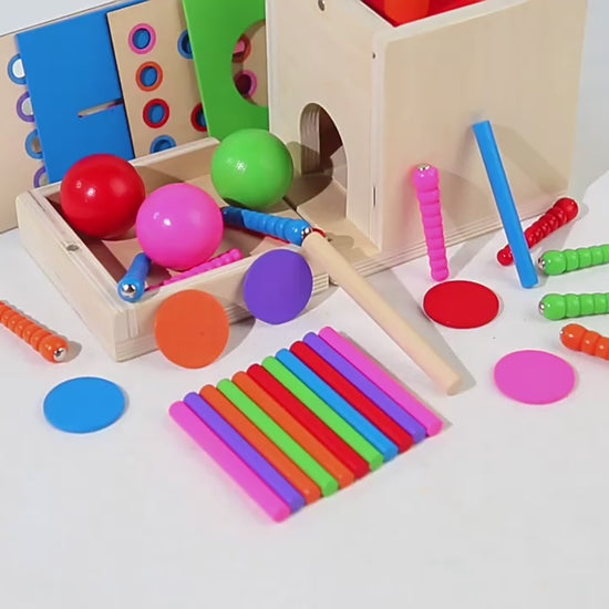 Montessori Holz Lernbox – Multifunktionales Steck- & Formenpuzzle für Kinder