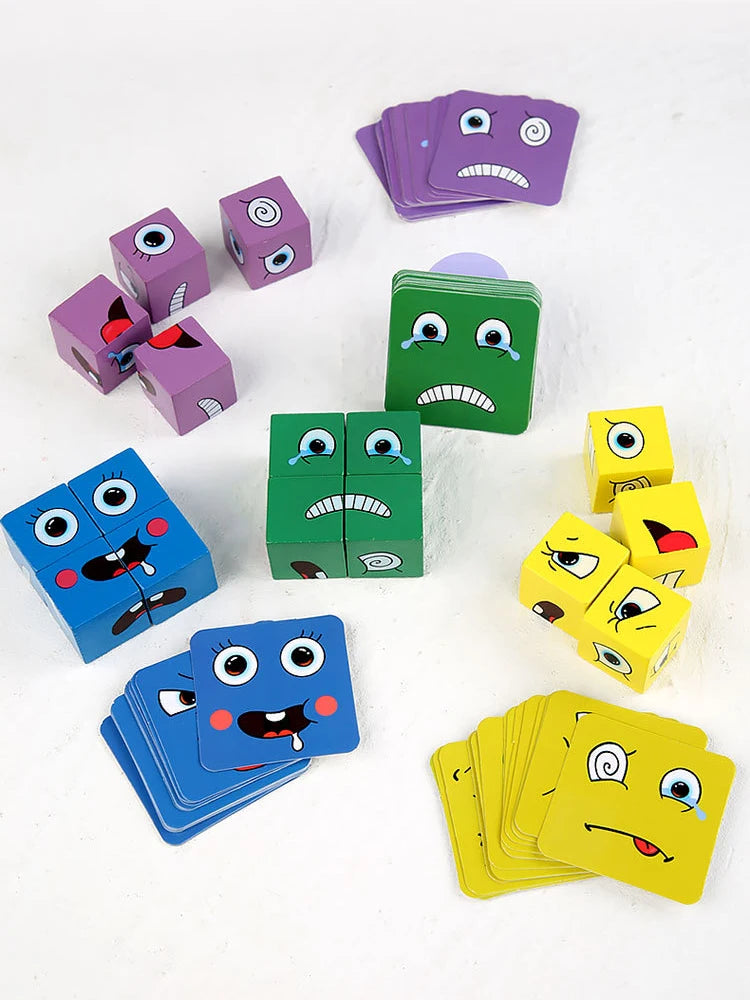 New 3D Montessori Geometry Puzzles Building Block Face Changing Logical Thinking Training Wooden Children's Early Education Toy